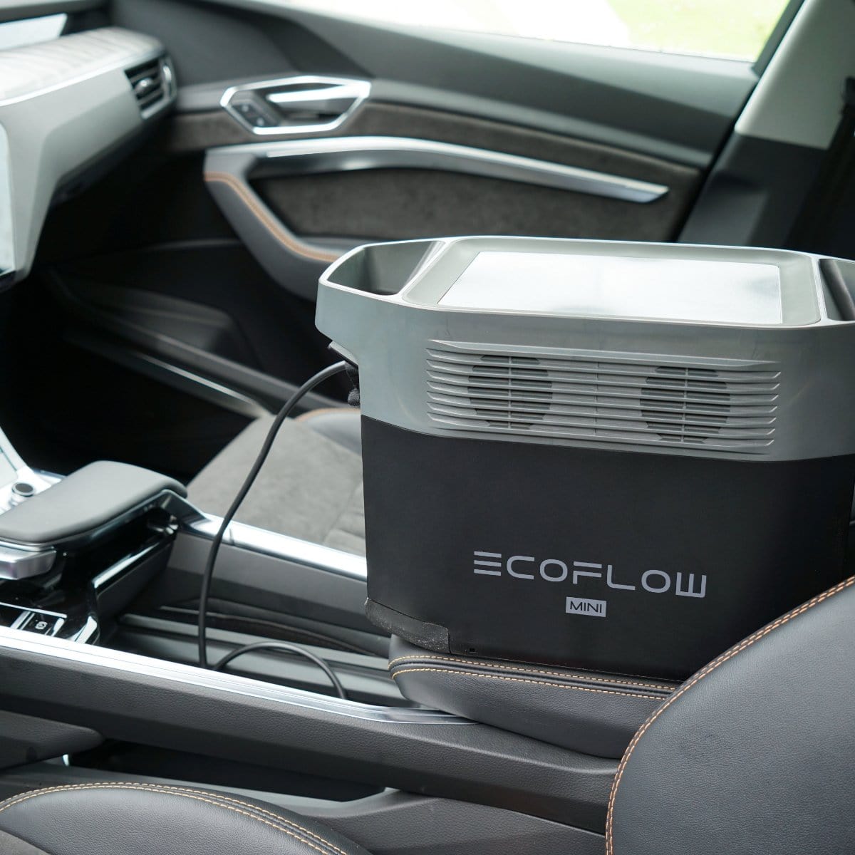 Sei in partenza per un viaggio su strada? Carica l'unità DELTA mini lungo il tragitto dalla presa di corrente per auto.