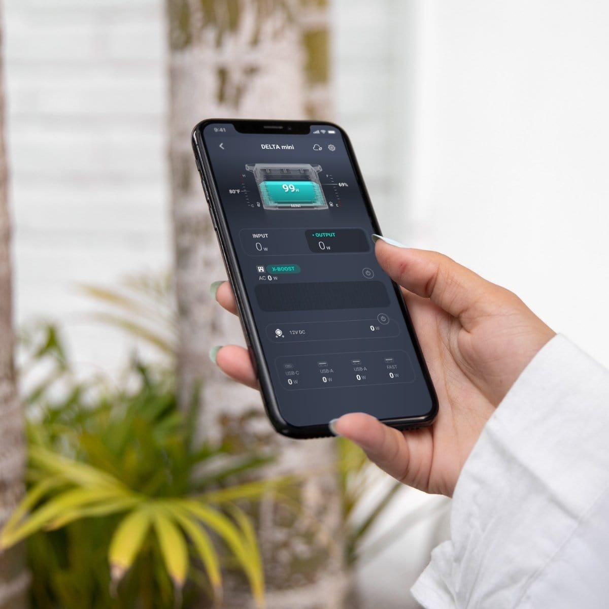 L'app EcoFlow mostra la quantità di energia solare che si accumula e quanti Watt vengono consumati dalla pentola per cottura lenta e dal mini frigo. Collegala a Internet e controllala ovunque vai.