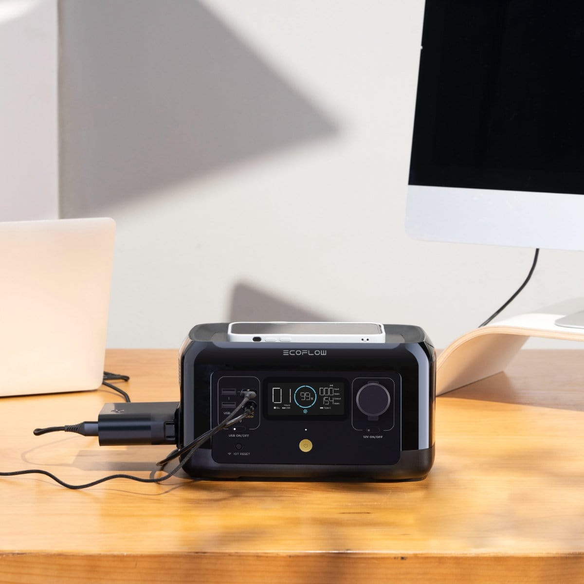 Alimenta i grandi dispositivi con le prese a muro CA di RIVER mini. Con un'uscita da 300 W (picco 600 W), l'unità RIVER mini è ideale per il 99% dei tuoi dispositivi: computer portatili, luci, TV, ideale per tutto.