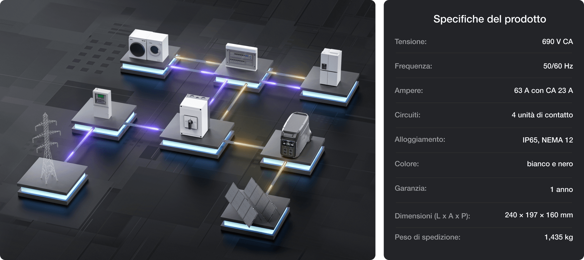 Un interruttore di trasferimento manuale ti consente di collegare in qualsiasi momento una power station portatile all’impianto elettrico della tua abitazione.