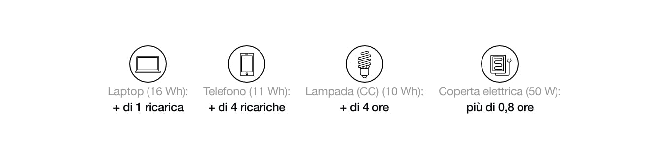 Ricarica solare (1x pannello solare portatile 110W): 2,5 ore