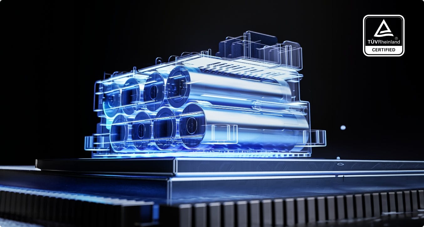 Senza aumentare la temperatura della batteria, la tecnologia di ricarica veloce di RIVER 2 non danneggerà la batteria. È la prima stazione di alimentazione portatile al mondo a ottenere la certificazione TÜV Rheinland, superando più di 20 criteri di alto livello.