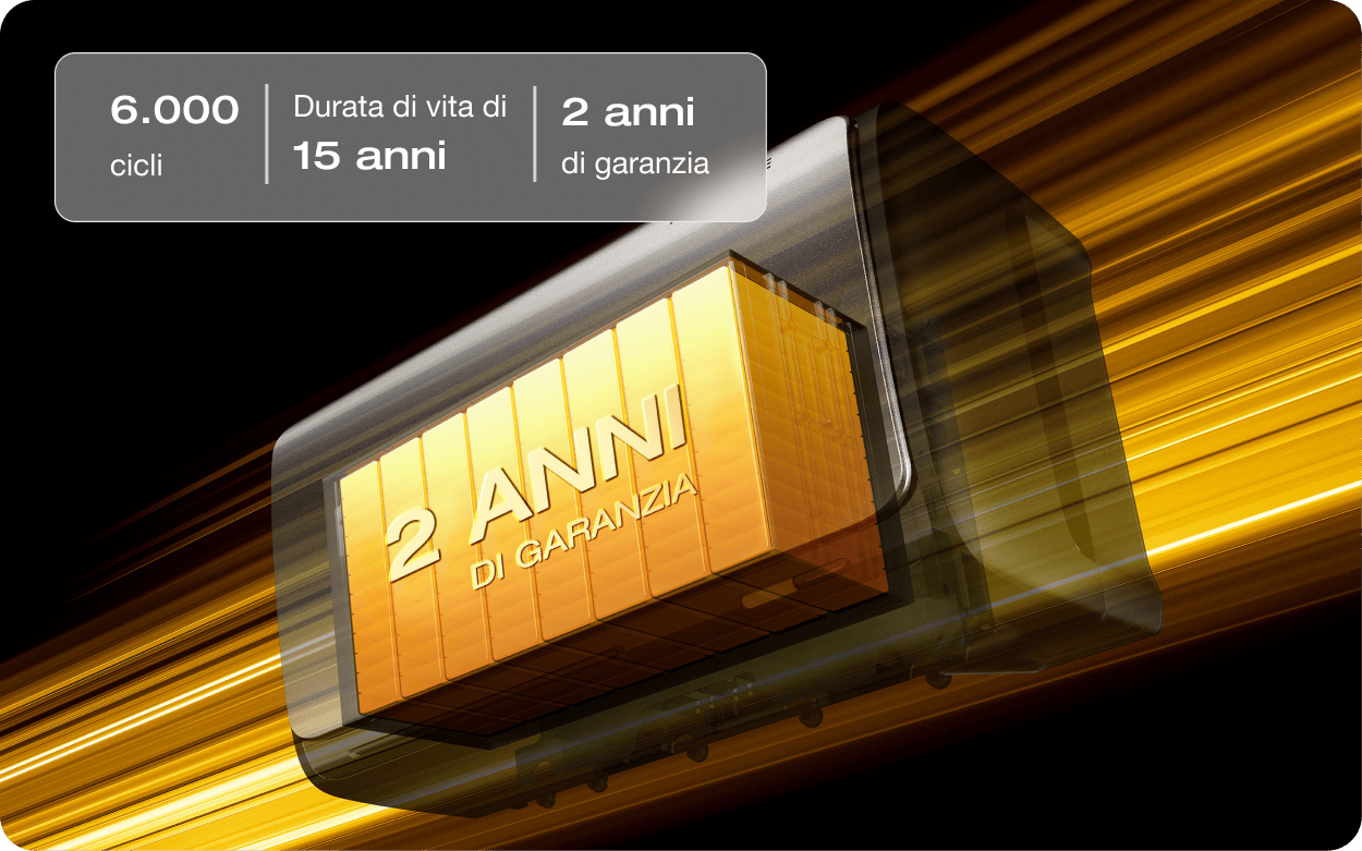 Grazie alle celle con tecnologia avanzata LFP, le batterie STREAM garantiscono fino a 6.000 cicli profondi con mantenimento del 70% della capacità, durando fino a 3 volte di più rispetto alle batterie tradizionali. Ciò significa fino a 15 anni di uso affidabile, a cui si aggiunge una garanzia di 2 anni.