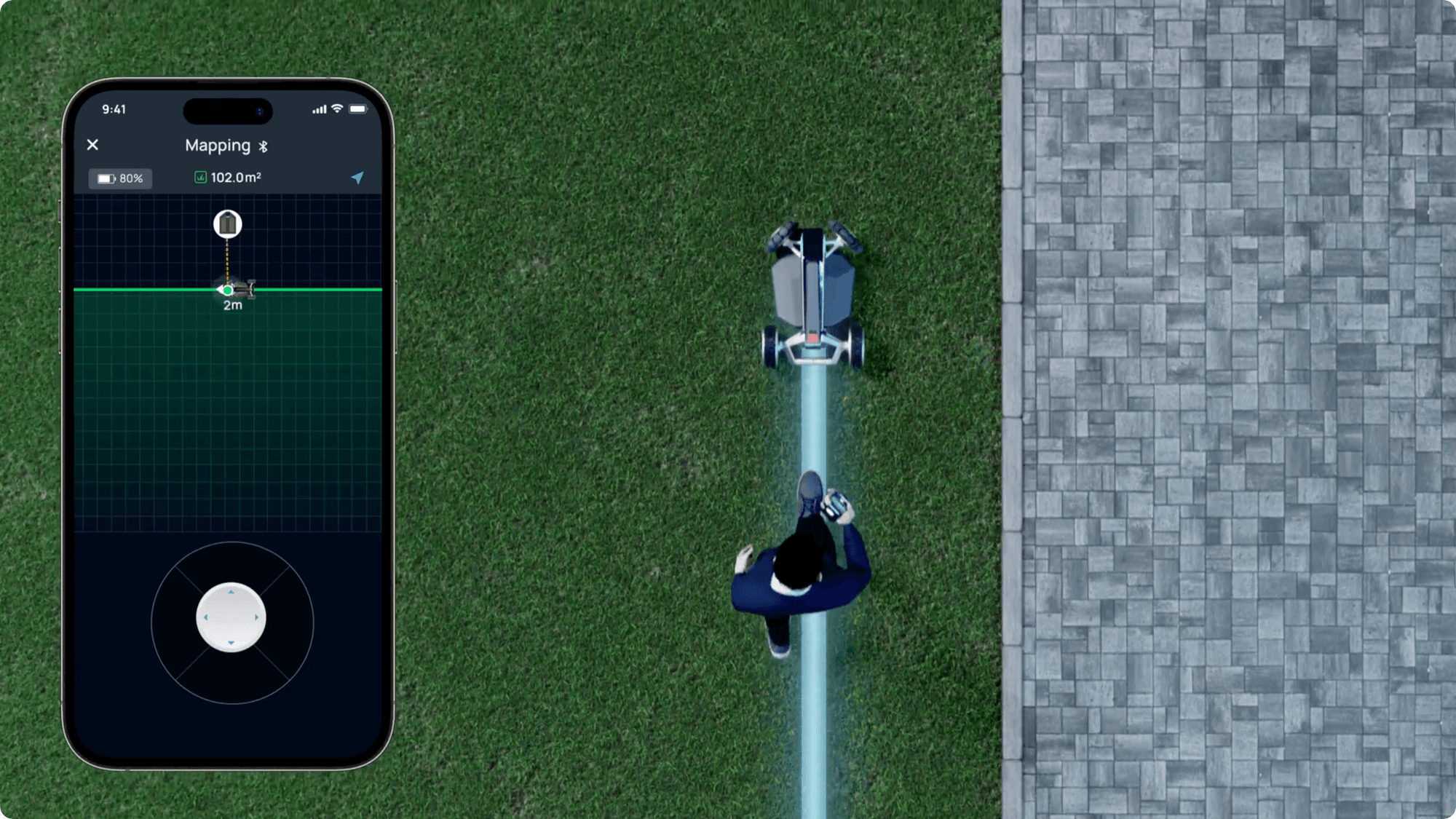Con la tecnologia di posizionamento RTK (Real-Time Kinematic), BLADE è in grado di riprogrammare il percorso in presenza di residui con un margine di precisione di 25 mm rispetto al percorso originale. Così non si blocca mai, e non tralascia alcuna zona del prato.