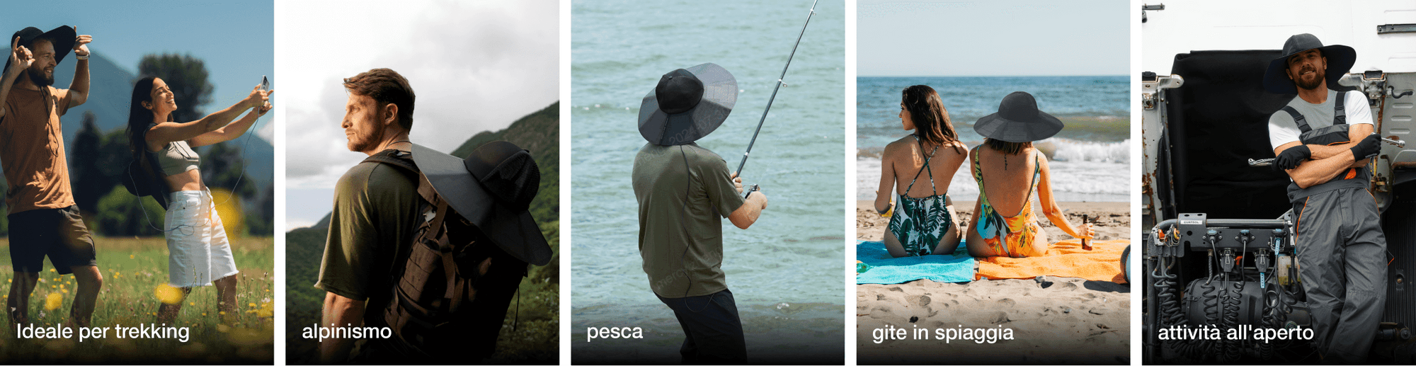 Ideale per trekking, alpinismo, pesca, gite in spiaggia, attività all'aperto e molto altro. Perfetto per unire ricarica solare e protezione dal sole durante le attività all'aperto.