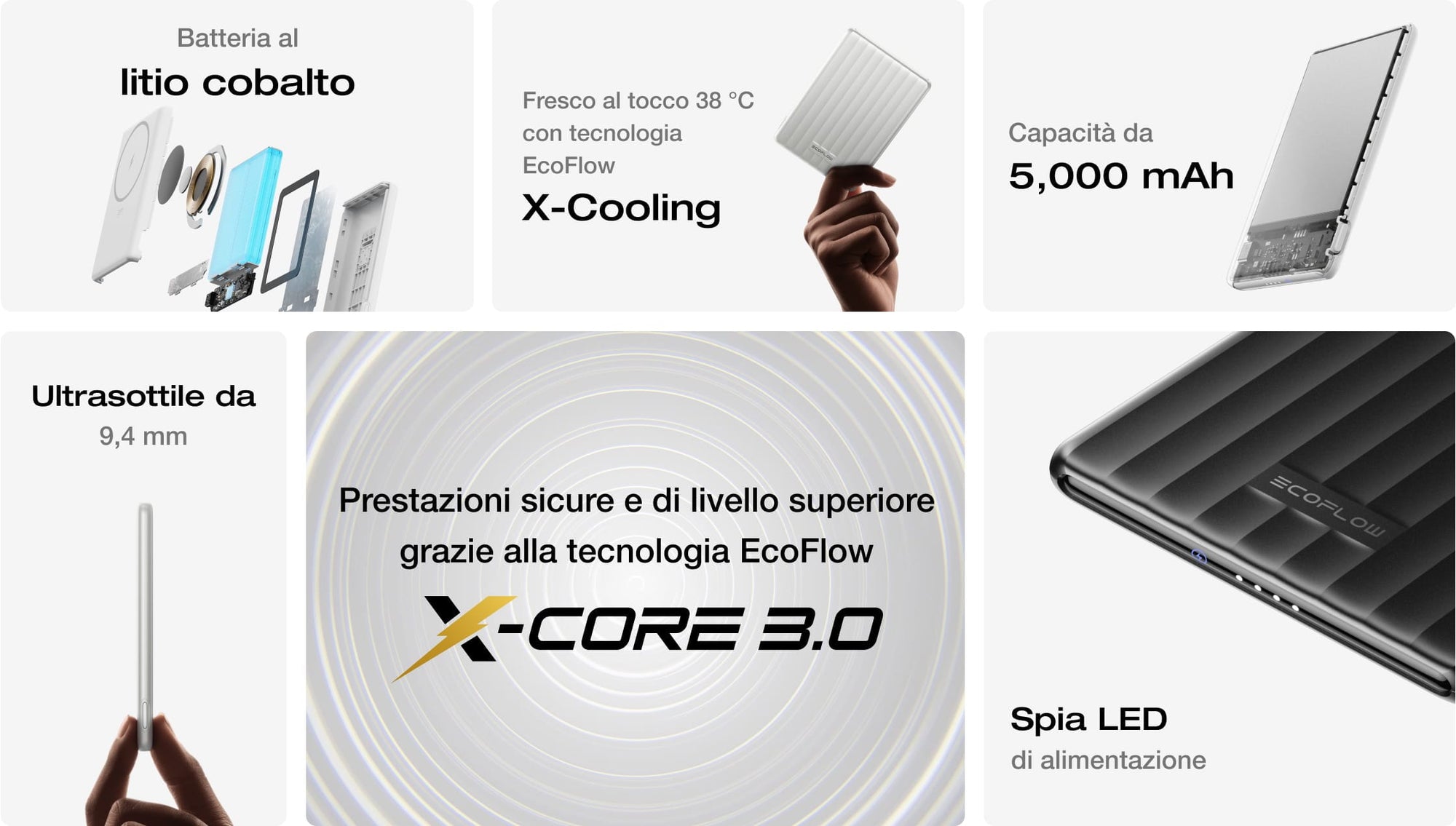 *Basato su test di laboratorio interni. Un power bank da 5.000 mAh completamente carico fornisce circa 3000-3100 mAh di energia utilizzabile a causa di una perdita energetica compresa tra il 35% e il 40%.