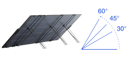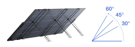 La staffa pieghevole integrata offre un design pratico e compatto. Può essere regolata con un angolo di 30°, 45° e 60°, pertanto è perfetta per le aree alle latitudini più elevate. Supporto regolabile con inclinazione di 30°, 45° e 60°