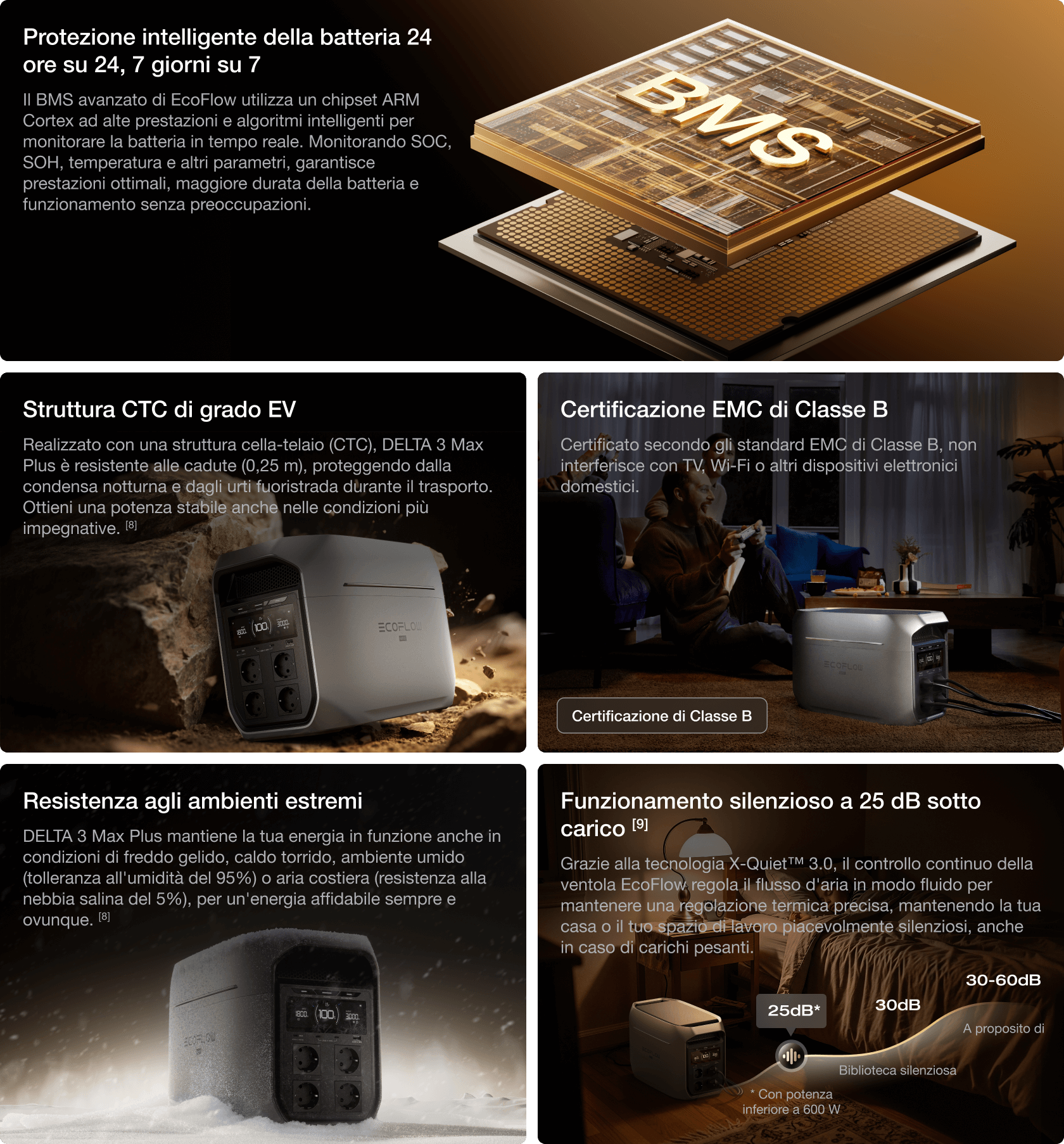 Dalla chimica della batteria alla progettazione strutturale, DELTA 3 Max Plus è progettato per garantire estrema durata, resilienza ambientale e prestazioni silenziose, offrendo una potenza su cui puoi contare per oltre 10 anni. [2]