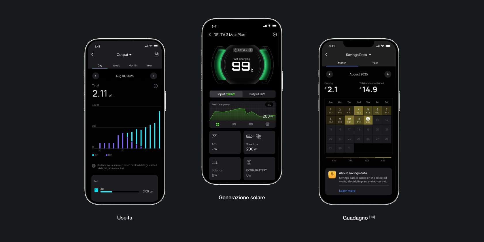 Ricarica durante i periodi di tariffe ridotte per risparmiare alla grande. DELTA 3 Max Plus ottimizza in modo intelligente il consumo energetico per aiutarti a ridurre le bollette elettriche e al contempo alimentare la tua casa in modo sostenibile.